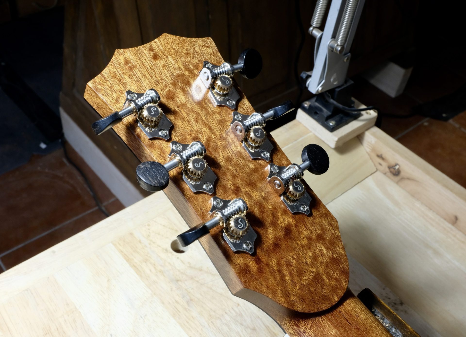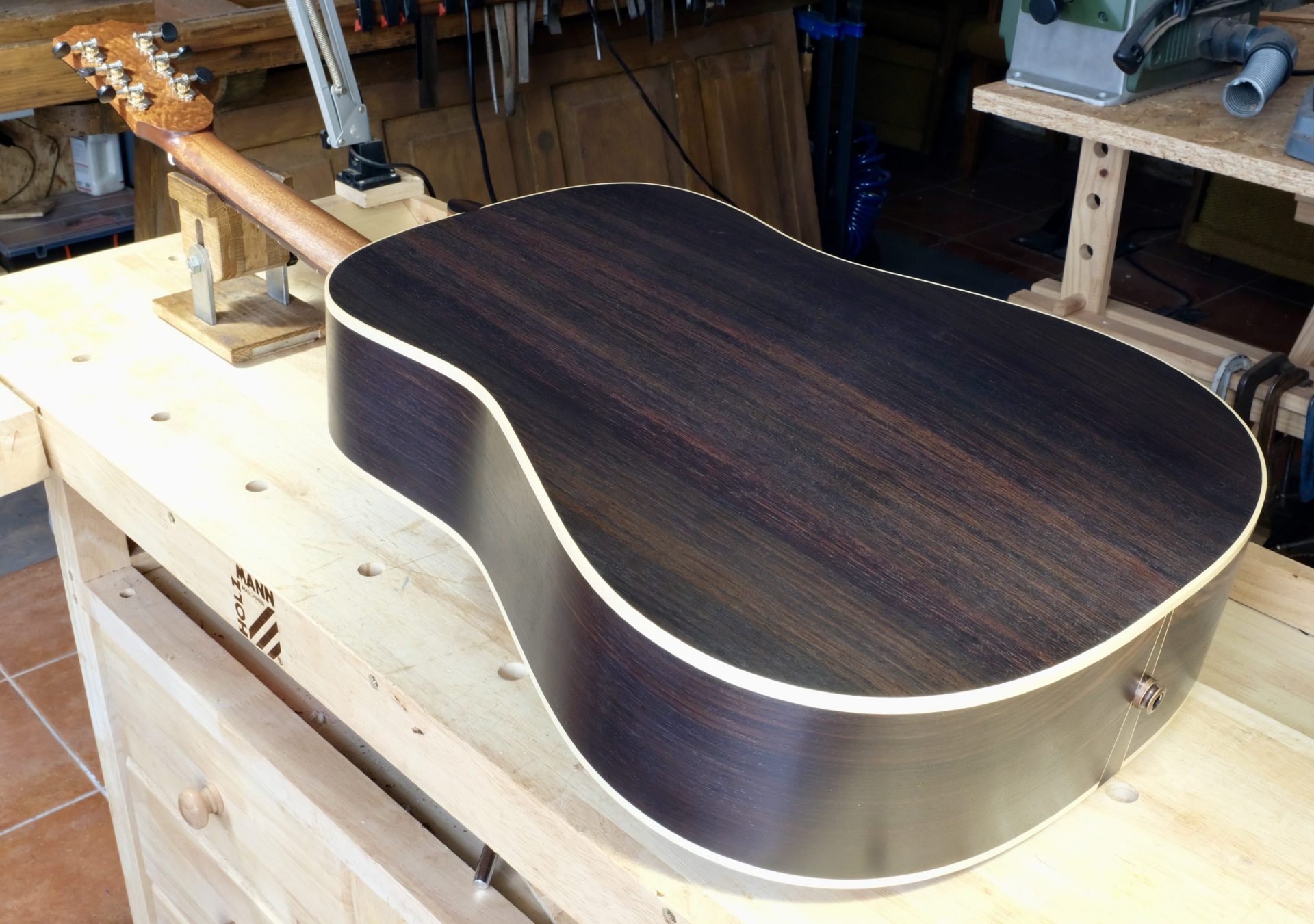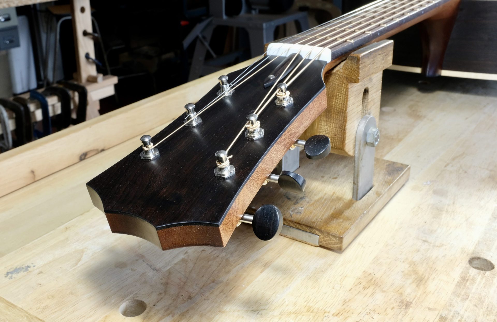 Finish: Varnish-oil and Hand Rubbed Black/Brown Burst on Guitar Body